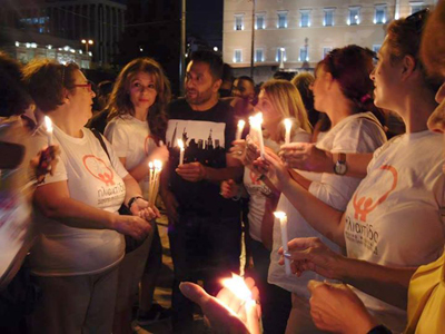 Με ένα λευκό κερί, μήνυμα Mνήμης, Tιμής και Eλπίδας, η «ηλιαχτίδα» βρέθηκε το Σάββατο 12/9/15 και ώρα 7μ.μ. στο Σύνταγμα.