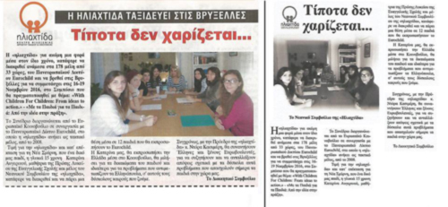 Το Πανευρωπαϊκό Δίκτυο Eurochild επιβραβεύει δημοσίως τις συνεχείς δράσεις της «ηλιαχτίδα» σχετικά με το παιδί.