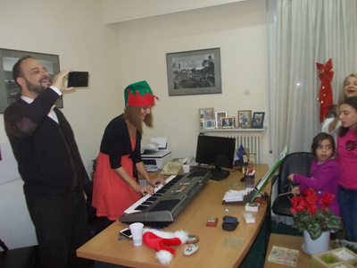 Συμμέτοχη στην όμορφη αυτή βραδιά, η γλυκιά Ειρήνη Φλωροπούλου με το αρμόνιο της τραγούδησε χριστουγεννιάτικες μελωδίες με τα παιδιά της “ηλιαχτίδα”.