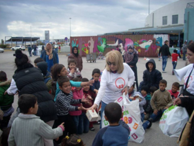 Η Πρόεδρος Ντόρα Κασιμέρη αγκαλιά με τα προσφυγόπουλα