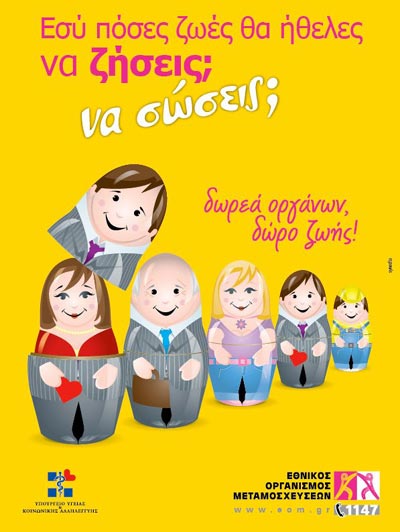 Με αφορμή την «Πανελλήνια Ημέρα Δωρεάς Οργάνων»(1η Νοεμβρίου), με μια μεγάλη Δράση στις 3 Νοεμβρίου 2012, ημέρα Σάββατο και ώρα 11 π.μ. – 3 μ.μ. στην Κεντρική Πλατεία Ν. Σμύρνης θα προσπαθήσουν να ευαισθητοποιήσουν το κοινό σχετικά με τη σημασία της Δωρεάς Οργάνων. |