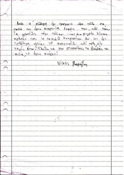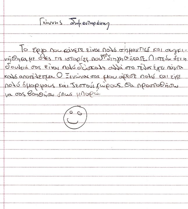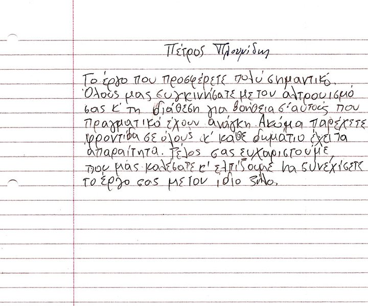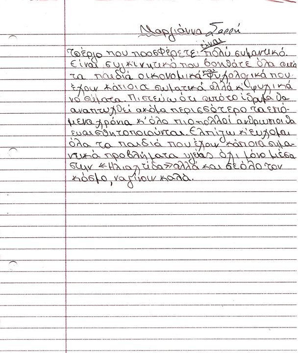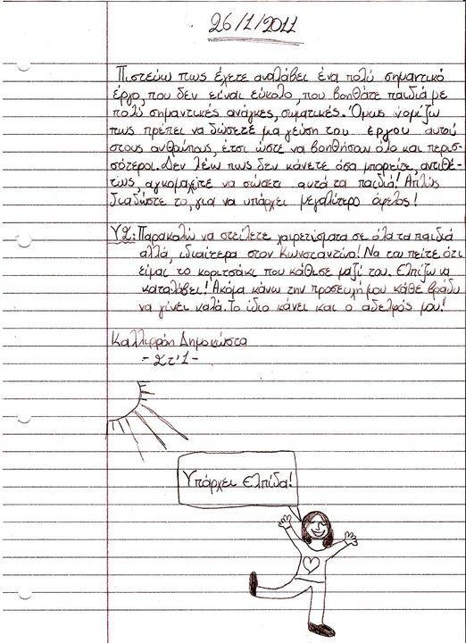 Οι επιστολές των παιδιών που περιείχε, θα είναι για μας η κινητήριος δύναμη, για να παίρνουμε κουράγιο και να συνεχίζουμε τον αγώνα μας.