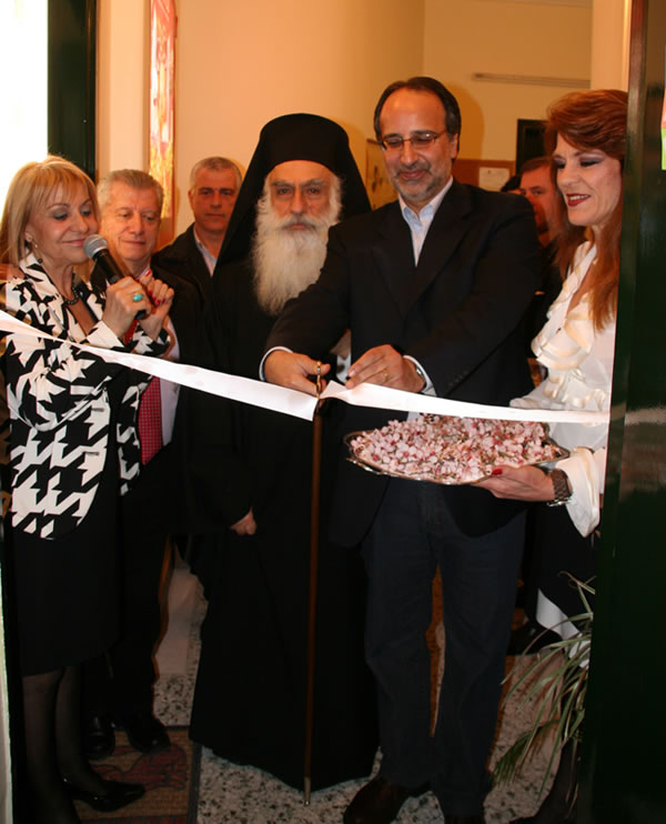 Η πρόεδρος με τον σεβασμιότατο μητροπολίτη Νέας Σμύρνης κ. Συμεών, τον δήμαρχο κ. Σταύρο Τζουλάκη, την αντιπρόεδρο κ. Κάτια Πατάκα και τον κ. Γιώργο Κουτελάκη τη στιγμή που κόβει την κορδέλα