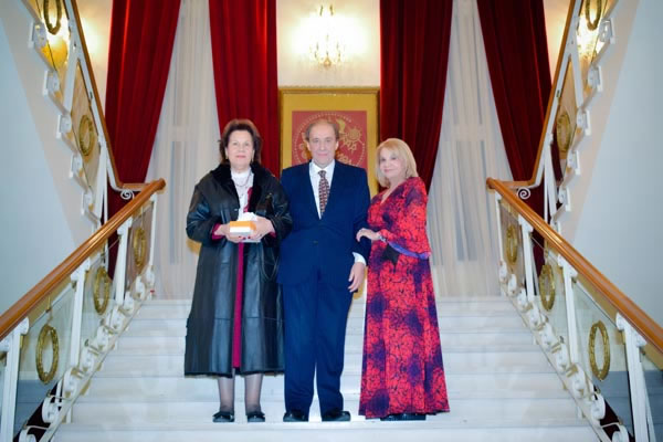 Η Πρόεδρος Ντόρα Κασιμέρη, πανευτυχής συνοδεύει στην έξοδο τον κύριο και την κυρία Κωστάκη.