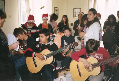 Τη μεγάλη αυτή χαρά ήρθε να συμπληρώσει η παρουσία των καθηγητών του 3ου Γυμνασίου Νέας Σμύρνης, κ. Νατάσας Μπαρμπαλιά και κ. Γιώργου Μπέσιου με ένα μεγάλο αριθμό μαθητών. Οι μαθητές με τις κιθάρες τους, μας τραγούδησαν τα κάλαντα και διάφορα άλλα χριστουγεννιάτικα τραγούδια δίνοντας μια χαρούμενη νότα στους φιλοξενούμενους του Κέντρου που δυστυχώς η ασθένειά τους, τους στέρησε την ευκαιρία να κάνουν Χριστούγεννα με τις οικογένειές τους, μακρυά από τα σπίτια τους. Τα παιδιά επέδειξαν μεγάλη ευαισθησία προσφέροντας κουτιά με δώρα που έφτιαξαν τα ίδια.